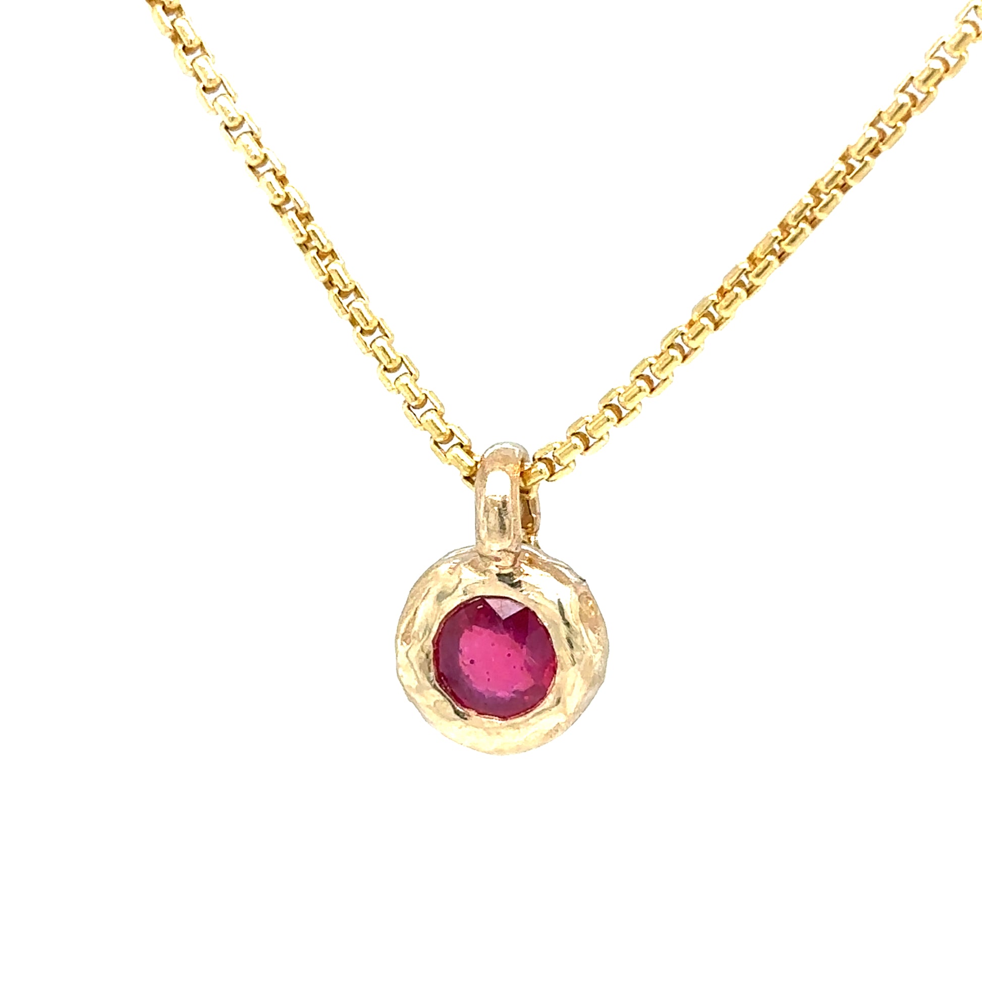 This gorgeous ruby pendant is set in our signature hand carved setting.