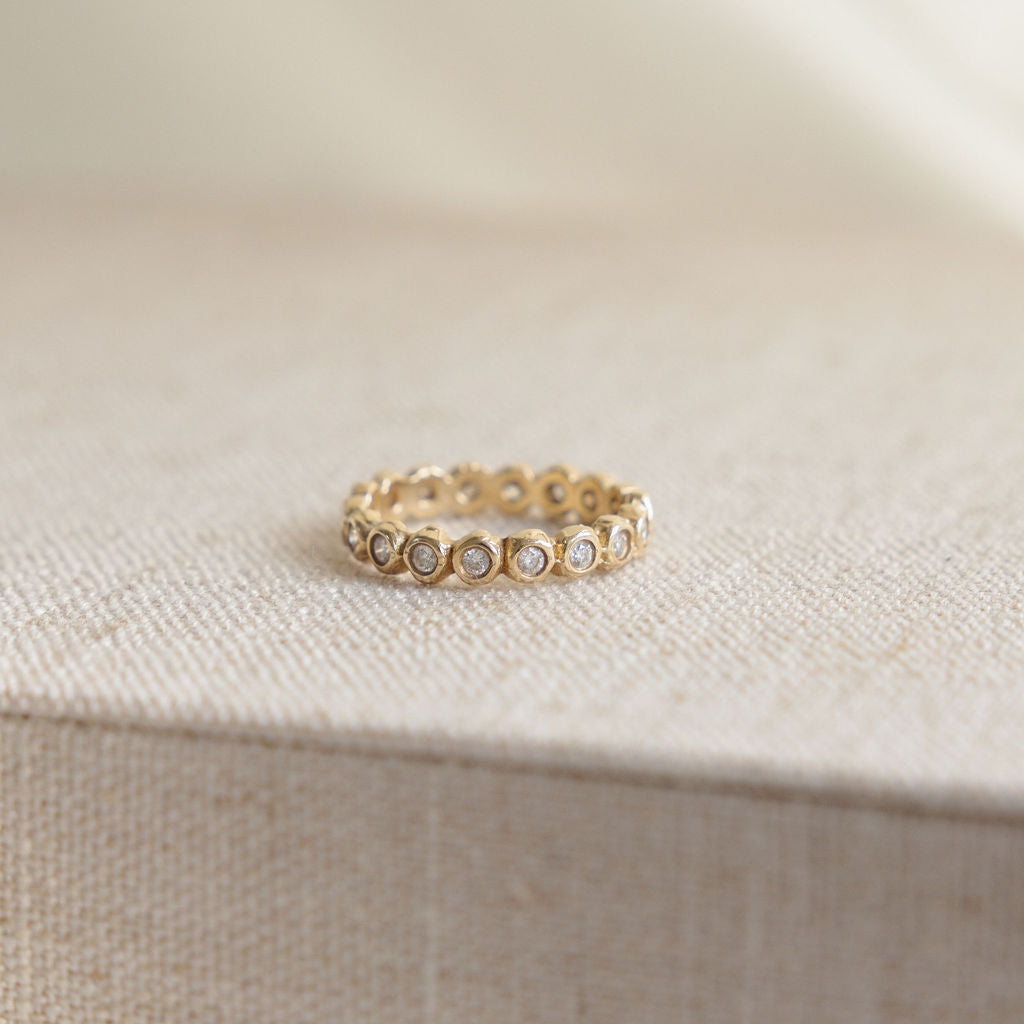 Our diamond eternity bands are a studio favorite. Perfect as a wedding band, anniversary band, special occasion piece, or everyday stacking band. Their timeless design makes them a versatile addition to any collection.
